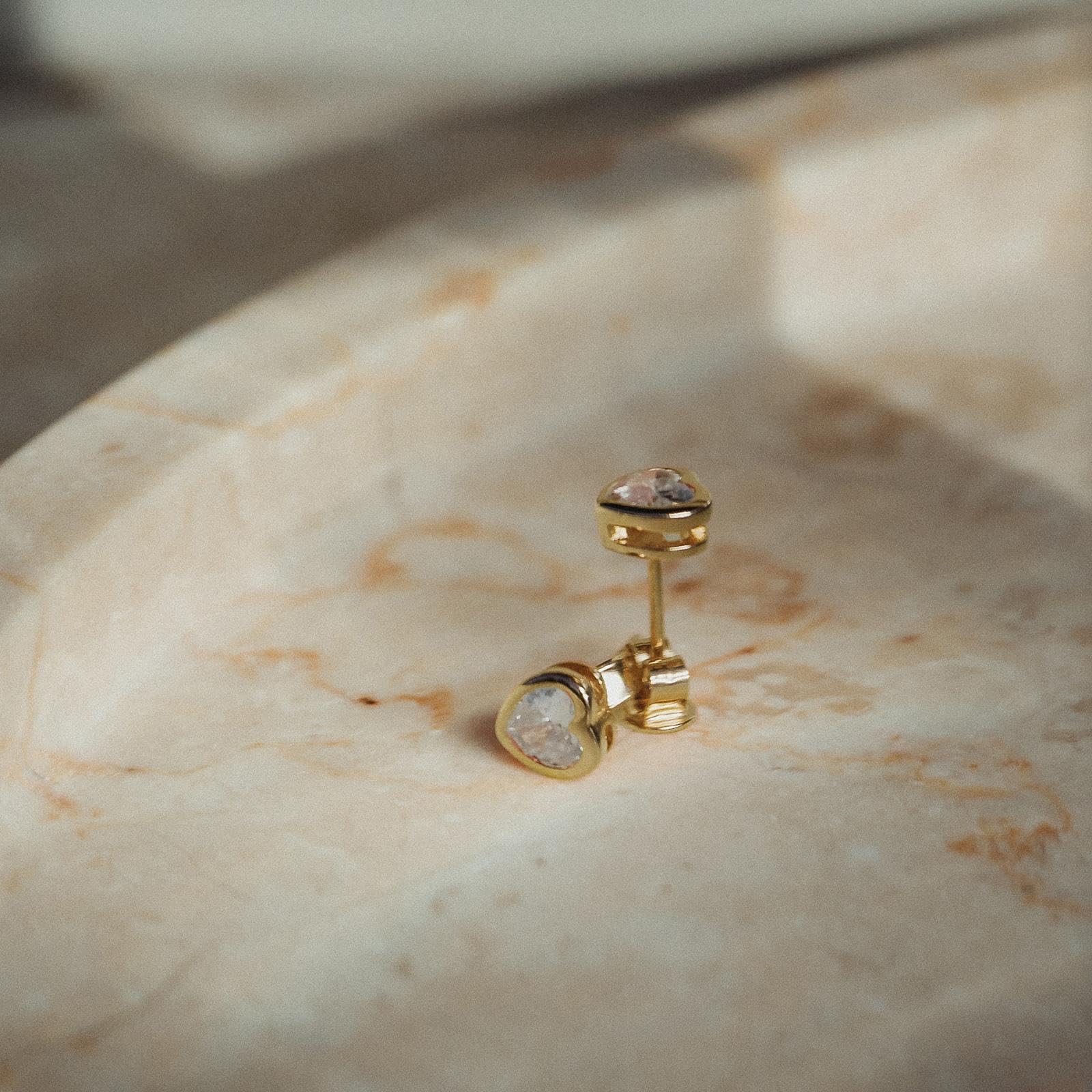 Vergoldetes 925 Sterling Silber: Herzkette & Ohrstecker mit funkelnden Zirkonia - nickelfrei & rhodiniert für langanhaltenden Glanz