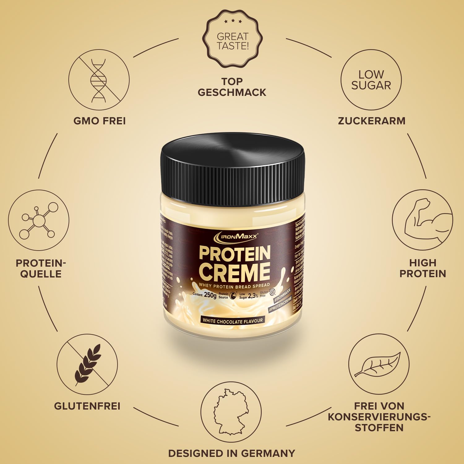 IronMaxx 'White Chocolate' Protein Creme (250g) | Cremiger Low Carb - Low Sugar Brotaufstrich