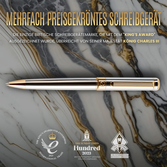 Scriveiner Kugelschreiber Hochwertiger Design Kugelschreiber in Silber mit Echtvergoldung, schwarze Schmidt Ersatzmine, Geschenkbok, Büro set, Professionelle Kugelschreiber