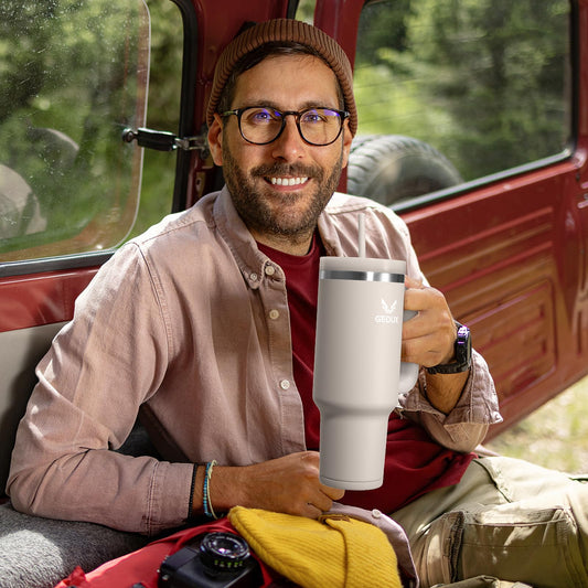 Gedux Thermobecher (900ml) | 2-in-1 Edelstahl Trinkflasche mit Strohhalm