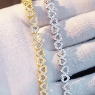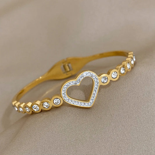 Love Bracelet | Stainless Steel Gold-Plated, Heart Charm Bracelet with Glitter Stones