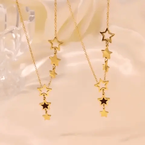 Trendy Ladies Star Pendant Necklace | Titanium Stainless Steel Gold-Plated, Black Acrylic