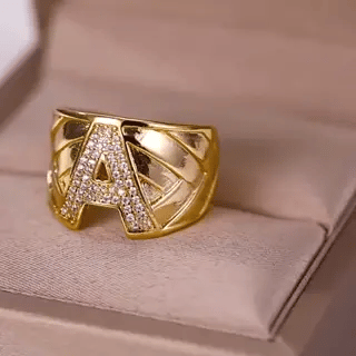 Adjustable Letter Rings (A-Z) with Zirconia | Stainless Steel, Jewelry Gift