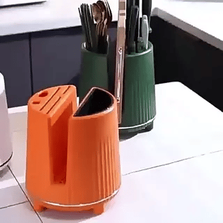 Rotating Knife & Utensil Holder with Integrated Cutting Board Storage | Multifunctional Kitchen Organizer for Cutlery