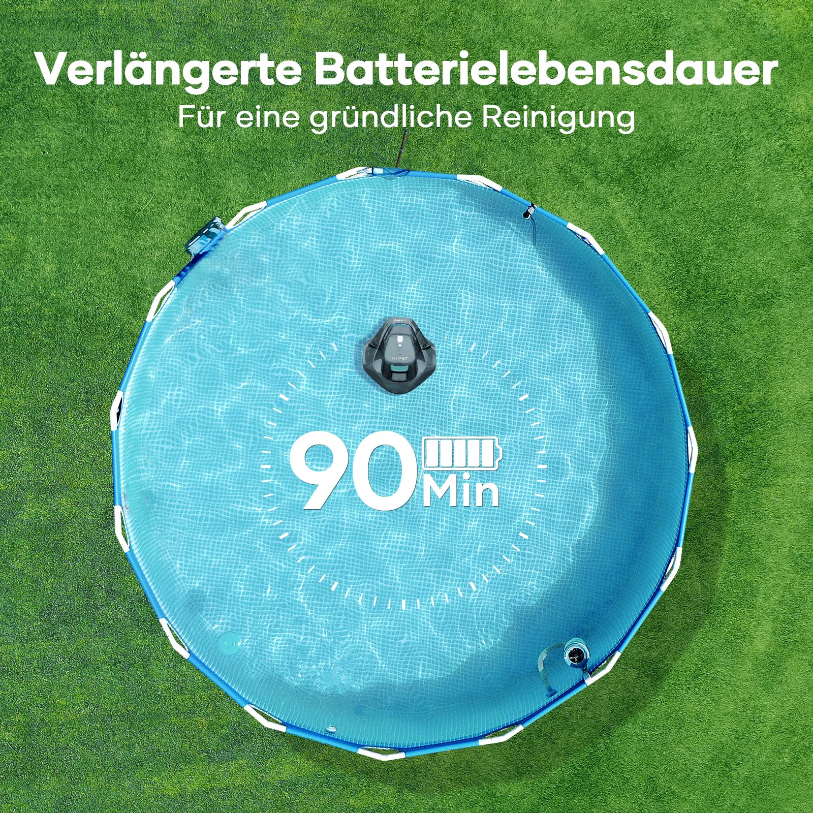 The AIPER Seagull SE is a lightweight (3.7 kg) battery-powered pool robot for pools up to 80 m². With a powerful 4000 mAh battery, it cleans for up to 90 minutes at a time and is fully recharged in just 2.5 hours .