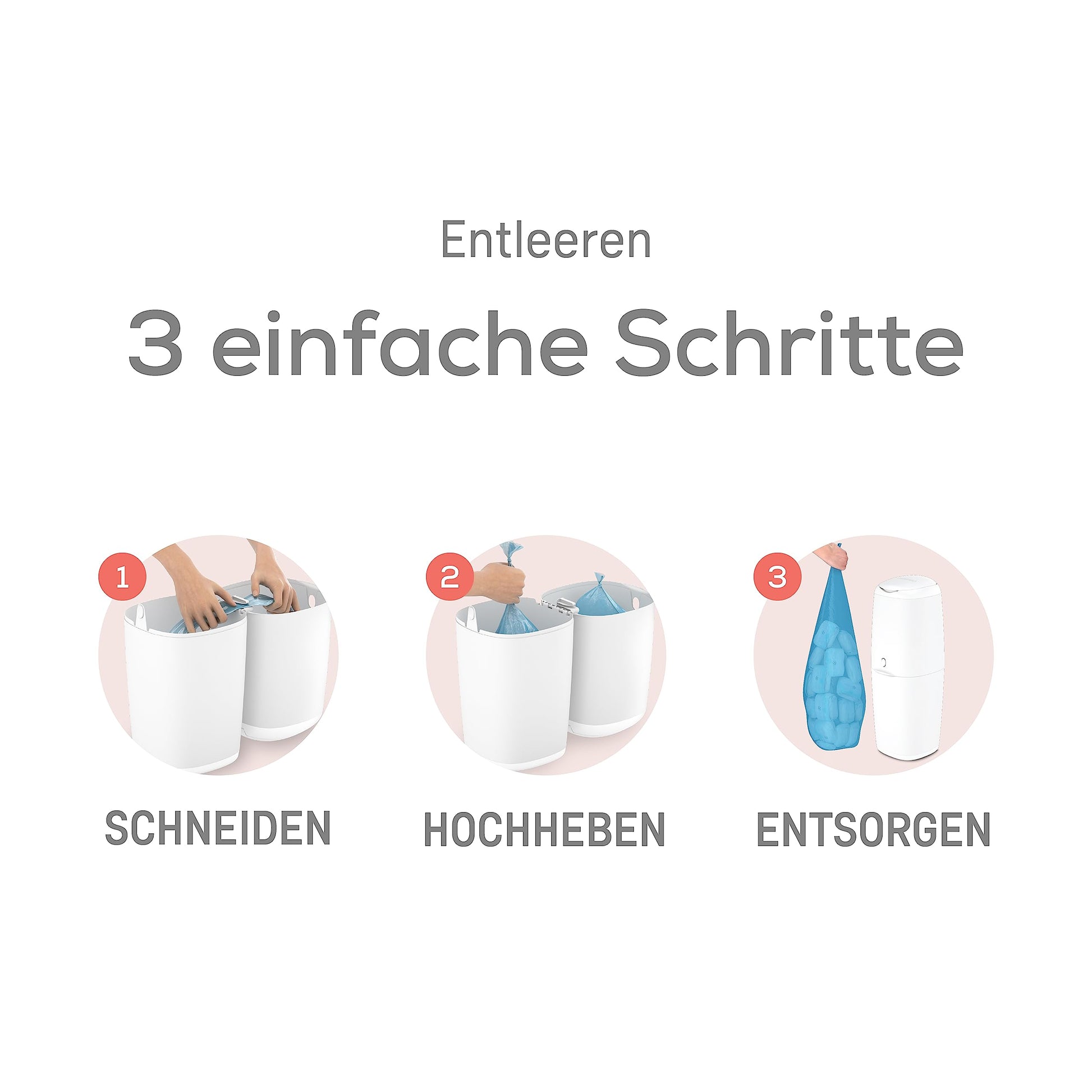 The Angelcare Classic XL diaper pail combines convenience, hygiene, and environmental awareness . Thanks to the seven-layer film with OdourSeal technology, unpleasant odors are reliably trapped . Instead of being individually wrapped, diapers are collected in a continuous film tube – this saves material and is more environmentally friendly .