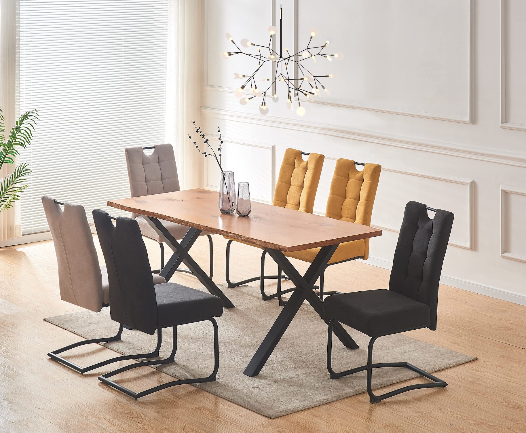 Elegant cantilever chair with soft woven fabric cover - stylish comfort for dining room & living room
