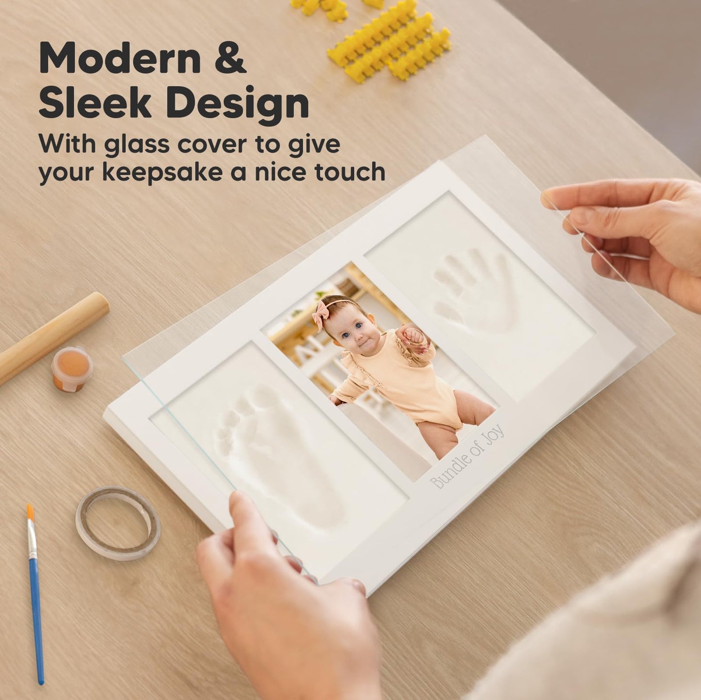 Made with food-safe, safe clay , this set is perfect for delicate baby hands and feet. The sturdy wooden frame with real glass ensures lasting quality in stylish Alpine White . Whether for a baby shower or as a birth gift, this set will capture those most beautiful first moments forever.