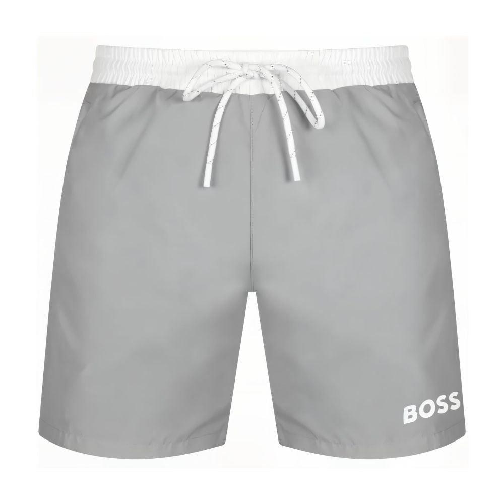BOSS Men's 'Starfish Medium Grey' swim shorts with drawstring: Quick-drying
