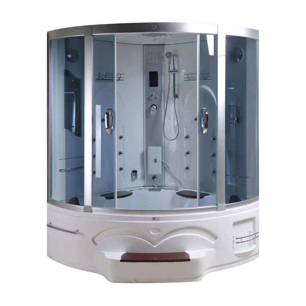 Steam shower & whirlpool 'Los Angeles' (150x150cm): 9 massage jets, aromatherapy, LED, touch