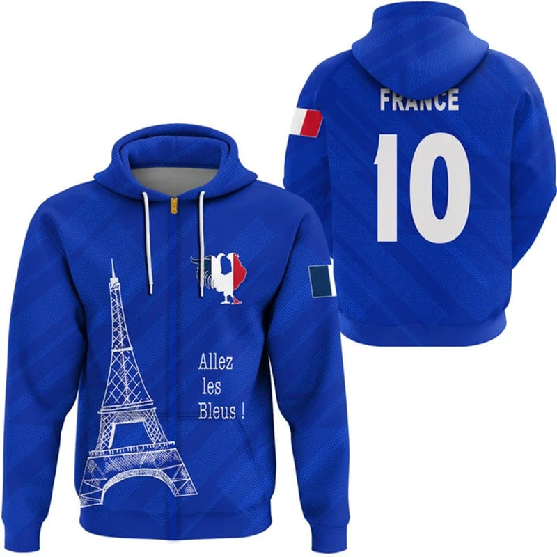 Experience French pride with our France ZIP Sport Hoodie 3D!