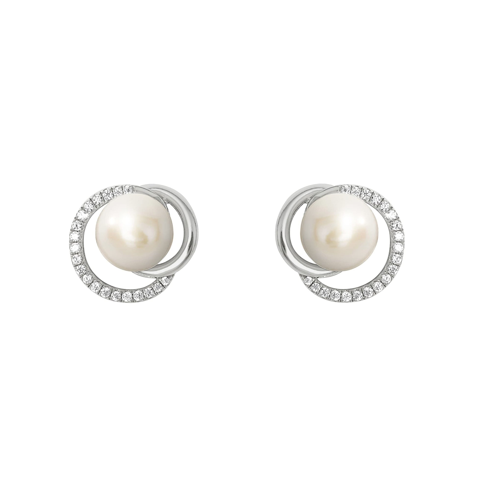 JOOP! Freshwater cultured pearl women's earrings with synthetic zirconia, including gift box