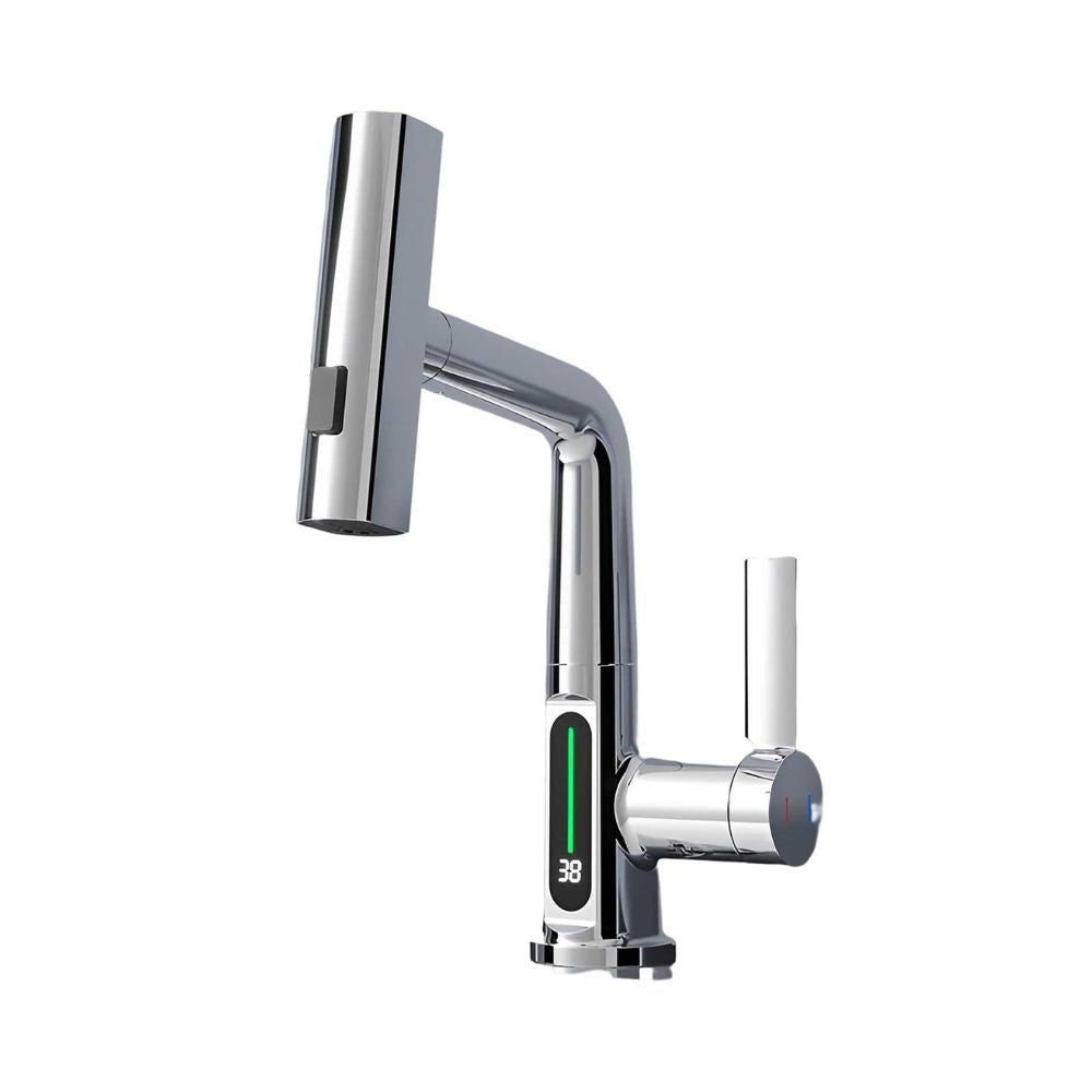 Versatile Application: This latest swivel waterfall faucet offers an intelligent experience. Available in matte black, white, chrome, or gray.