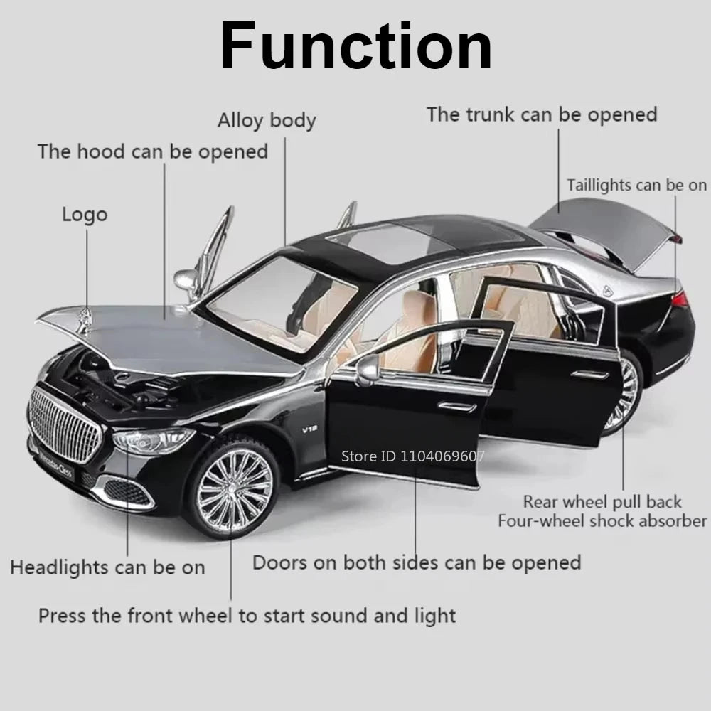 Maybach S680 Model Car (1:24) | Light, Sound, Doors Open, Pull-Back Function, Gift Idea