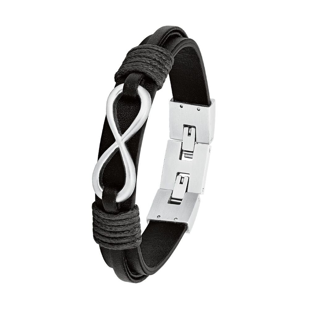 s.Oliver 'Infinity' leather-stainless steel bracelet for men in black (length: 20-21.5 cm)