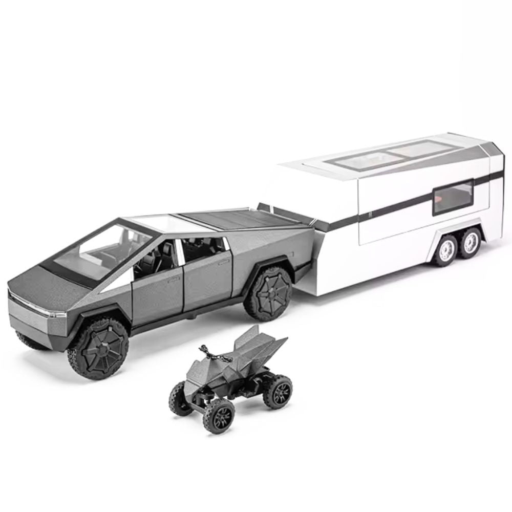 - Realistic Design: Faithful reproduction of the TESLA Cybertruck with trailer and motorcycle.