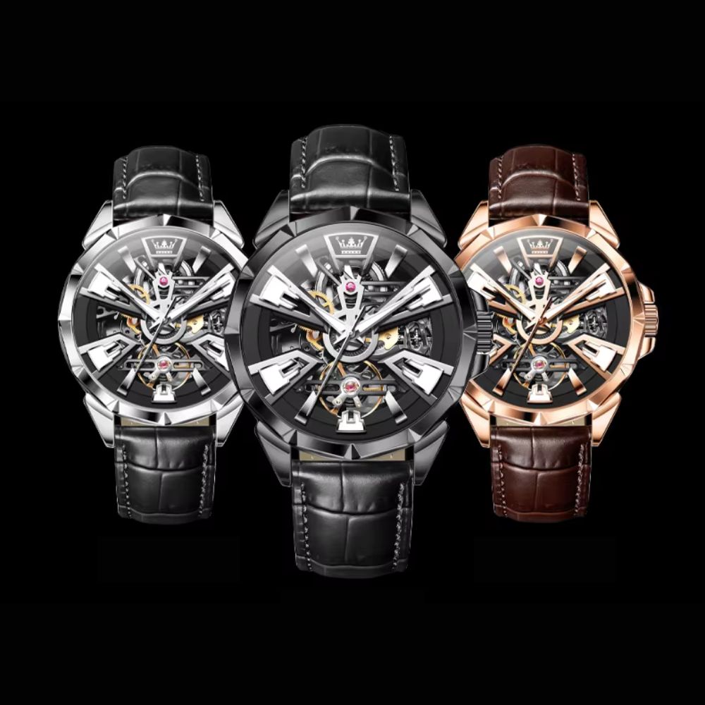 Double-sided hollow design: Admire the fascinating insight into the inner mechanics of the watch - a symbol of the beauty of watchmaking.