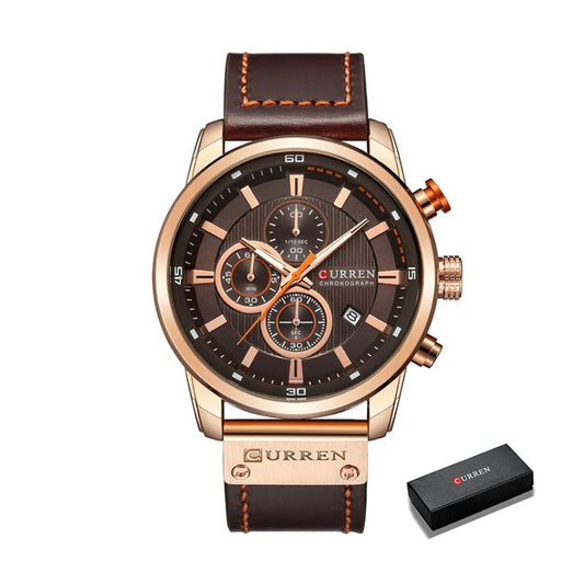 Montre à quartz chronographe de luxe CURREN pour homme avec bracelet en cuir
