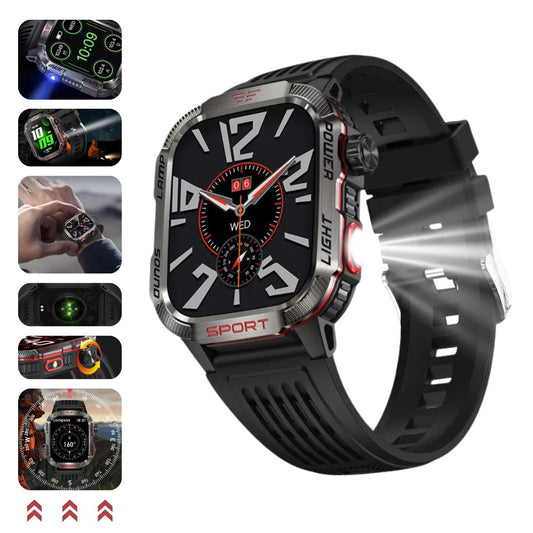 Montre intelligente militaire multifonction | Tracker d'activité en plein air : appel BT, vérification de facture et lampe de poche