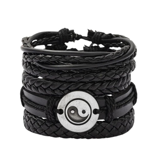 Bracelet homme en cuir tressé design ethnique vintage avec perles en bois