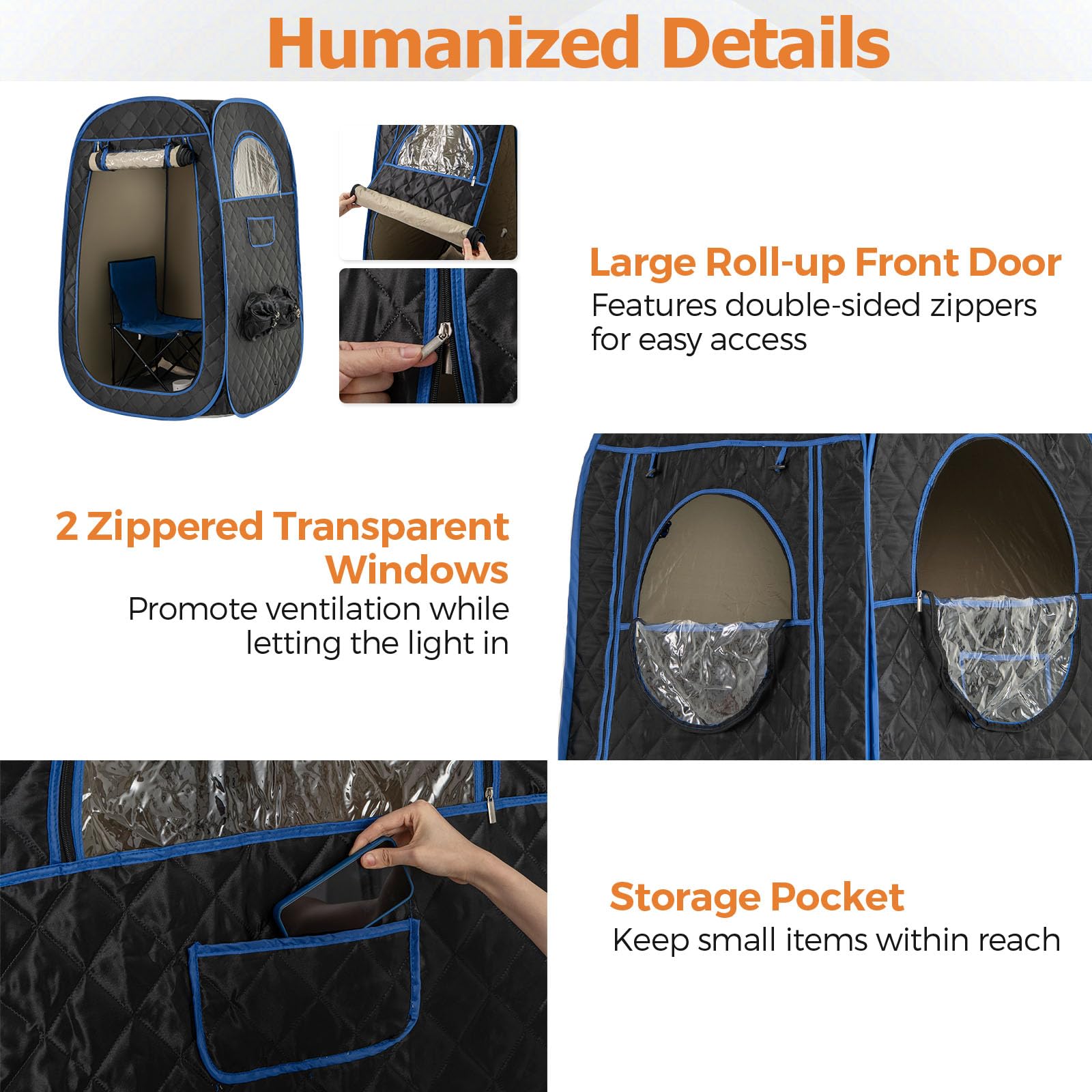 HOMASIS Dampfsauna für Zuhause mit Fernbedienung, Klappstuhl & Fußmassagegerät (Schwarz)