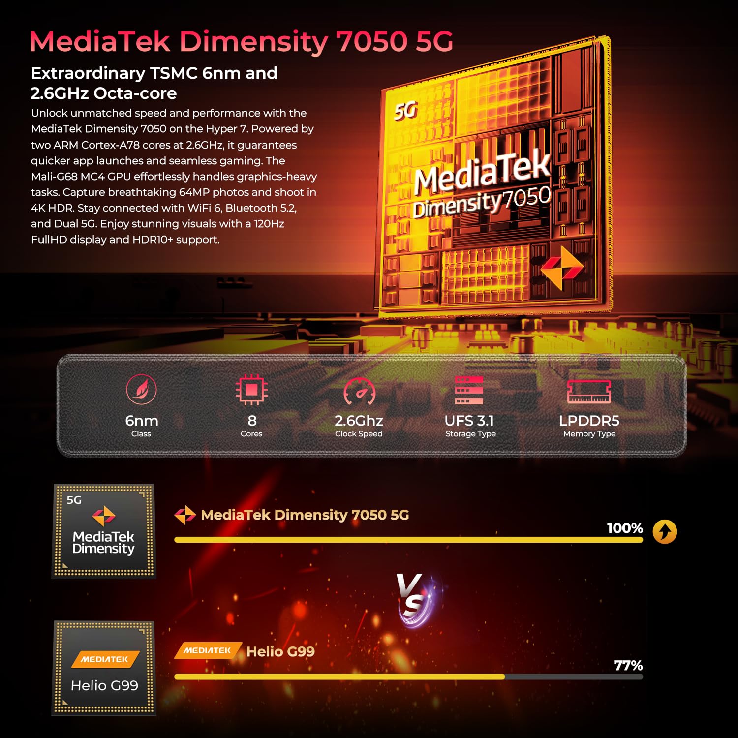 Extremer Speicher & Leistung: Dimensity 7050, 8-Kern-Prozessor, bis zu 20GB RAM & 256GB ROM - blitzschnell und speicherstark