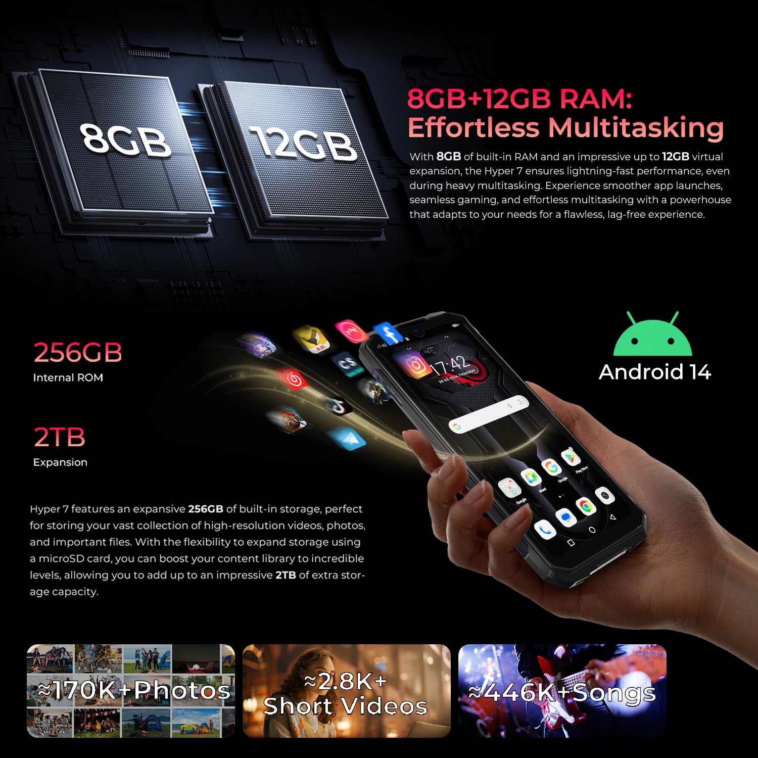Volle Funktionalität: Android 14, Face ID & Fingerabdruck, NFC, Dual-SIM, GPS + 3 weitere Systeme, ideal für Outdoor, Arbeit & Sport