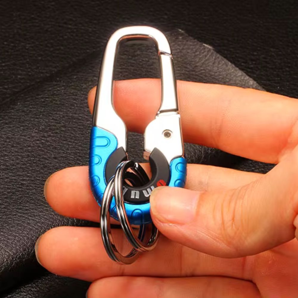 Porte-clés mousqueton haut de gamme en acier inoxydable | Anneau double, accessoires de pêche et de voiture