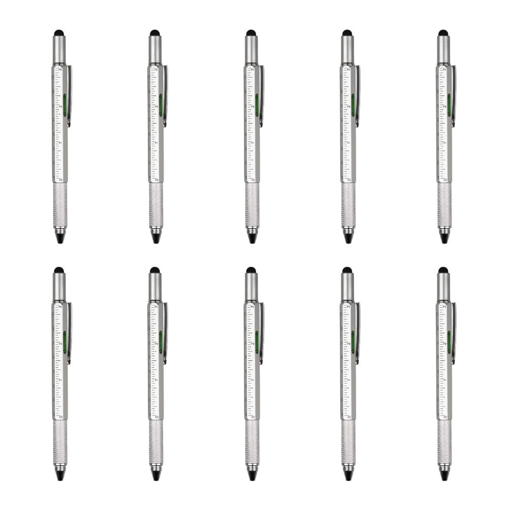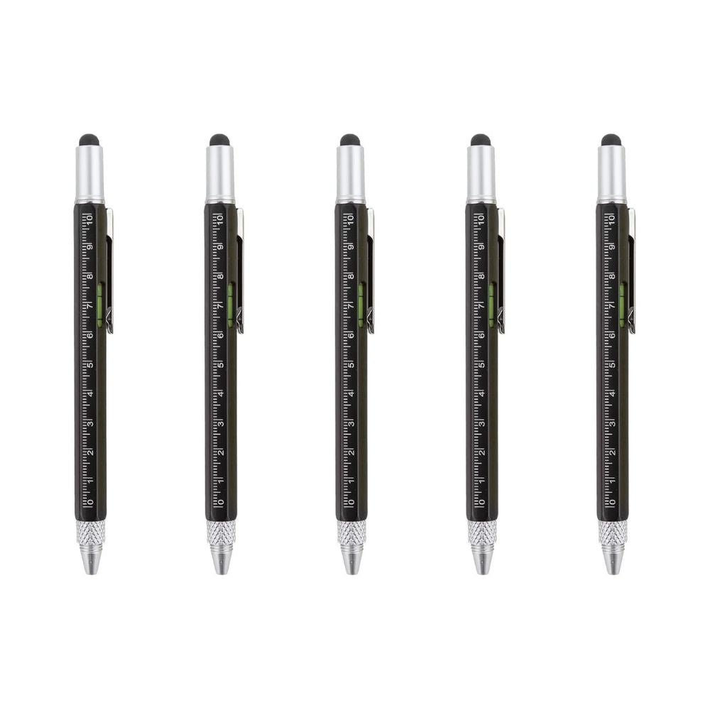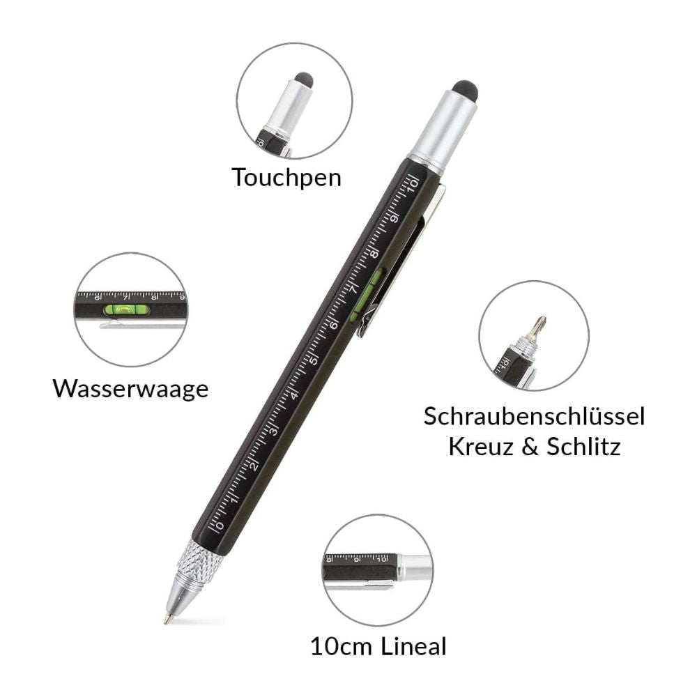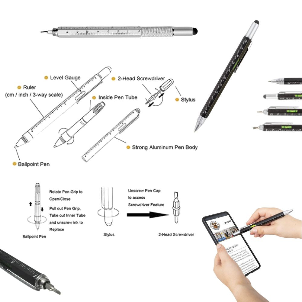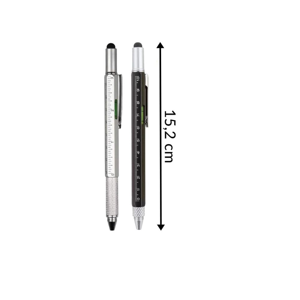 6-in-1 Multifunktionsstift: Stylus-Touch Pen, Schraubendreher (Schlitz + Kreuzschlitz), Lineal, Wasserwaage, Kugelschreiber