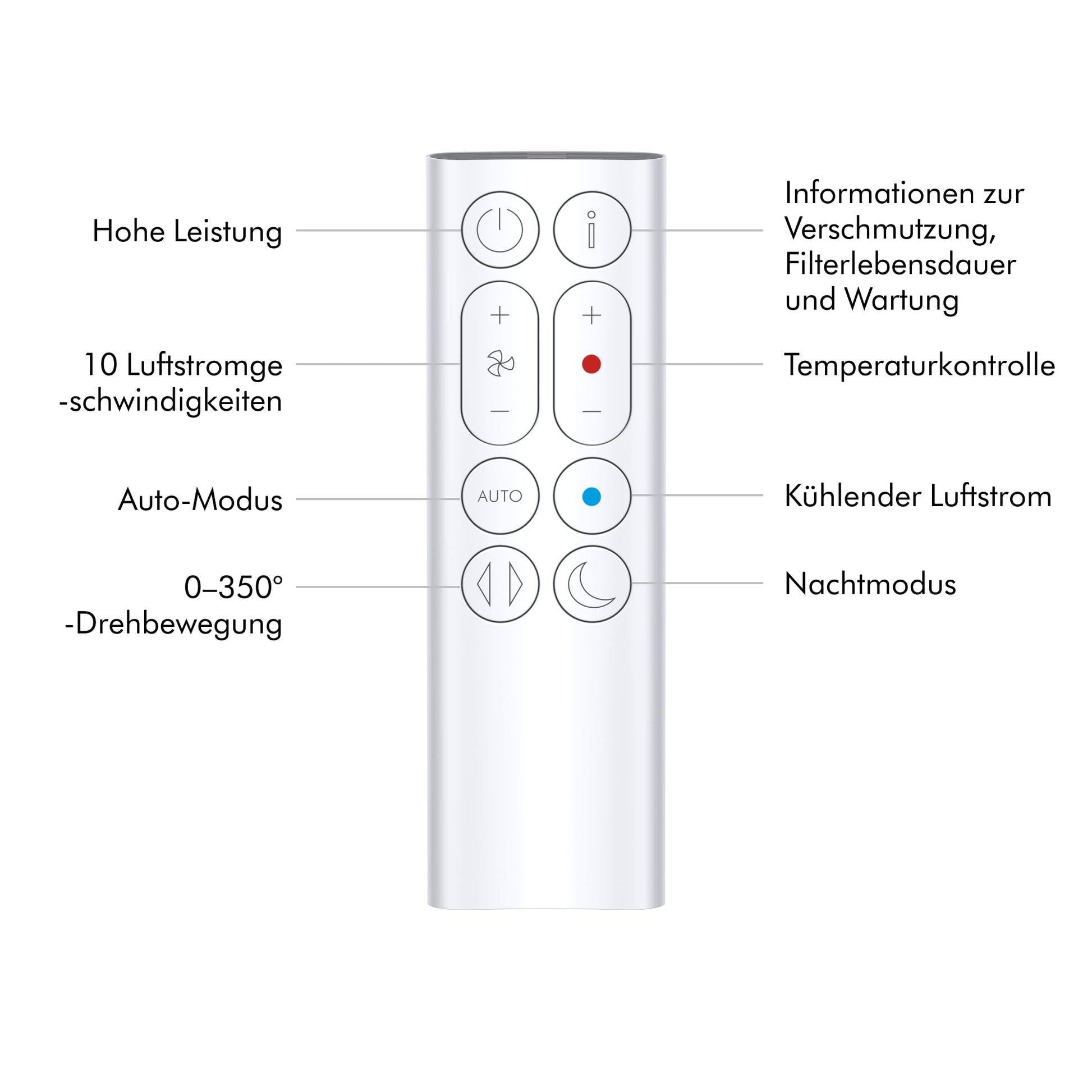 Fernbedienung mit 10 Luftstromeinstellungen: Individuelle Kontrolle über Luftmenge & Temperatur - bequem und intuitiv