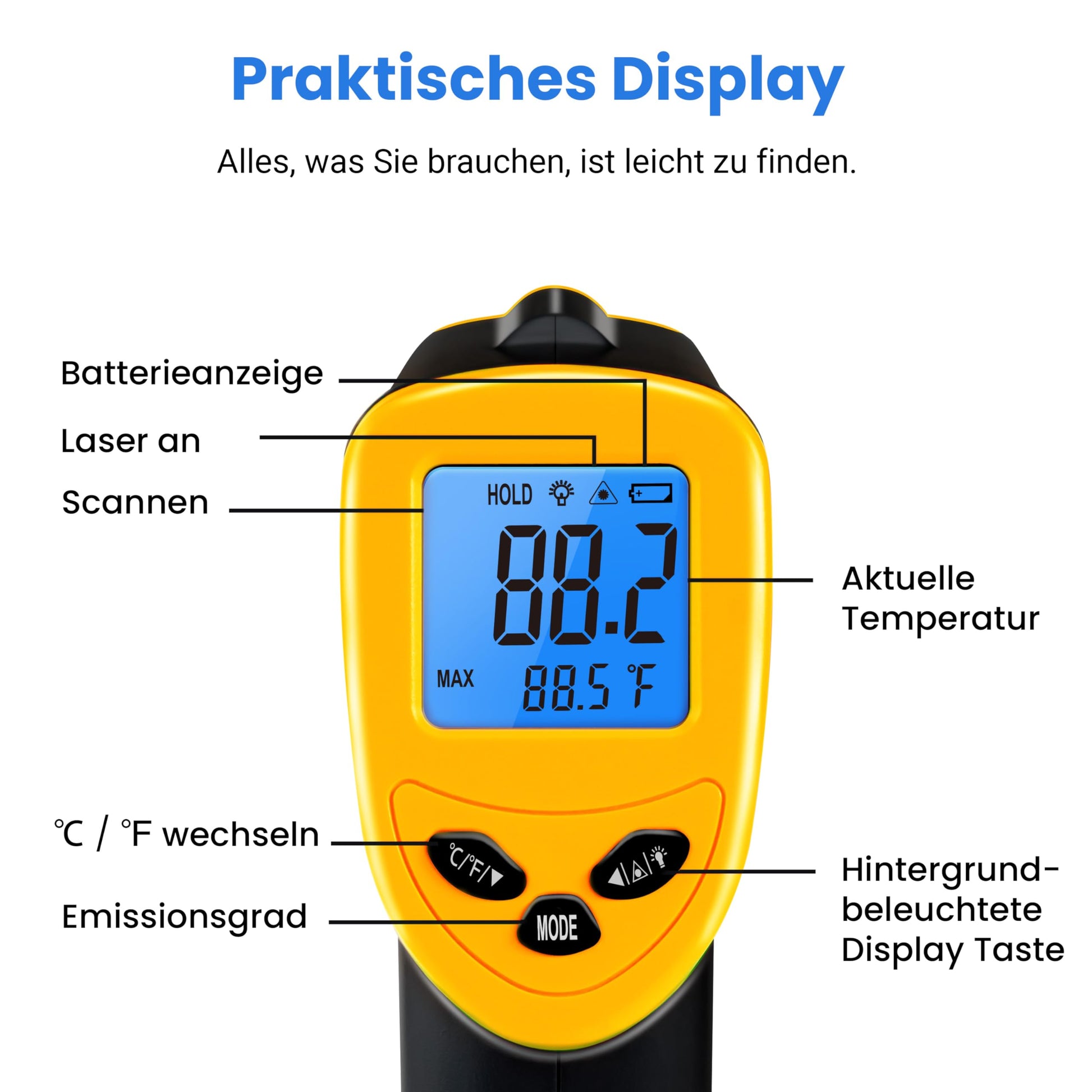 Zuverlässige Temperaturkontrolle für Profis und Heimwerker - Schnelle, präzise Messung von Oberflächentemperaturen mit vielseitiger Anwendung.