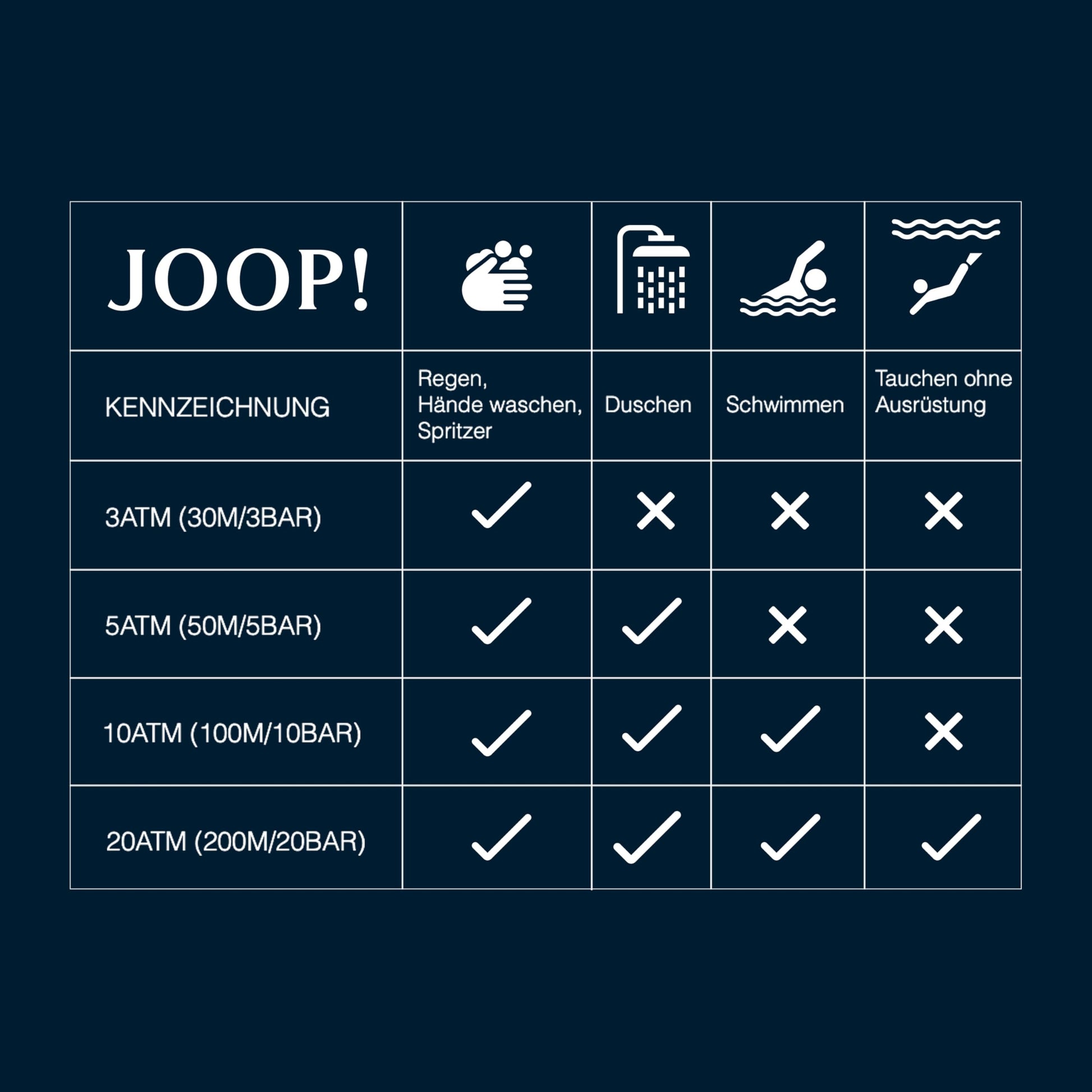 - Wasserdichtigkeit bis 5 bar - geeignet zum Duschen und Schwimmen