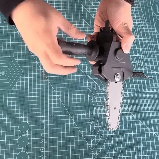 Portable Conversion Head Kits: Dieser Elektrobohrer wurde modifiziert, um als elektrische Kettensägen-Adapterwerkzeug verwendet zu werden, was ihn tragbar und einfach in der Anwendung macht.