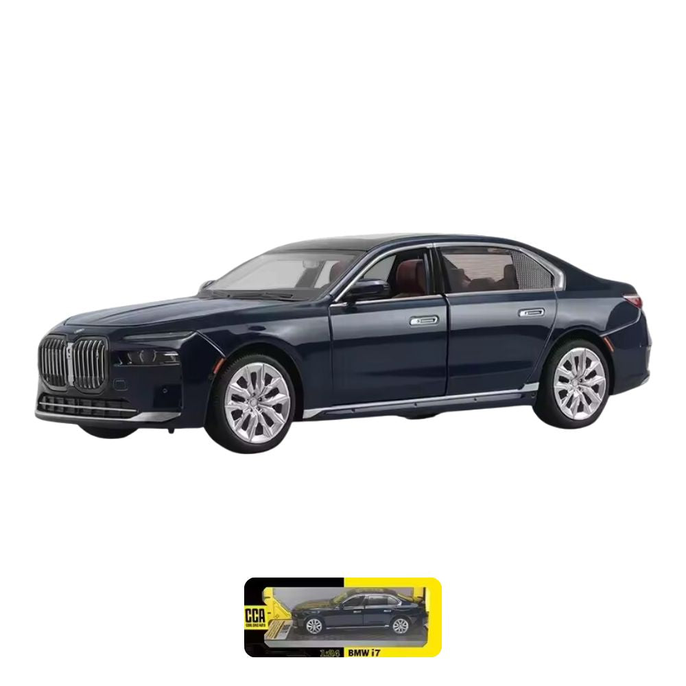 BMW i7 G70 Modellauto (1:24) | Sammler-Miniatur mit Displaybox, Deko, Geschenk (Saphir)