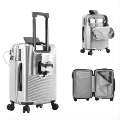 Multifunktionaler Hartschalenkoffer| Frontöffnung, TSA-Schloss, USB, Leise Rollen, Becherhalter