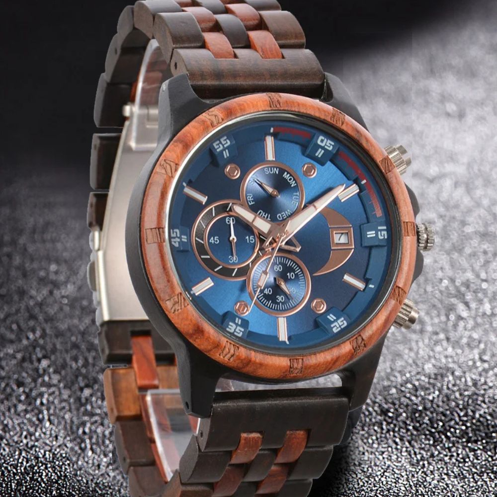 Edle Holzuhr für Herren | Personalisiert & Graviert (Optional), Perfektes Geschenk (Rot Sandelholz)