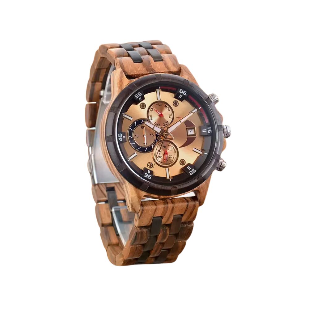 Edle Holzuhr für Herren | Personalisiert & Graviert (Optional), Perfektes GeschenkBequem & Sicher: Der zweifarbige Holzarmband-Design bietet Komfort und Stil zugleich. Die Edelstahl-Schließe sorgt für sicheren Halt und Langlebigkeit.
