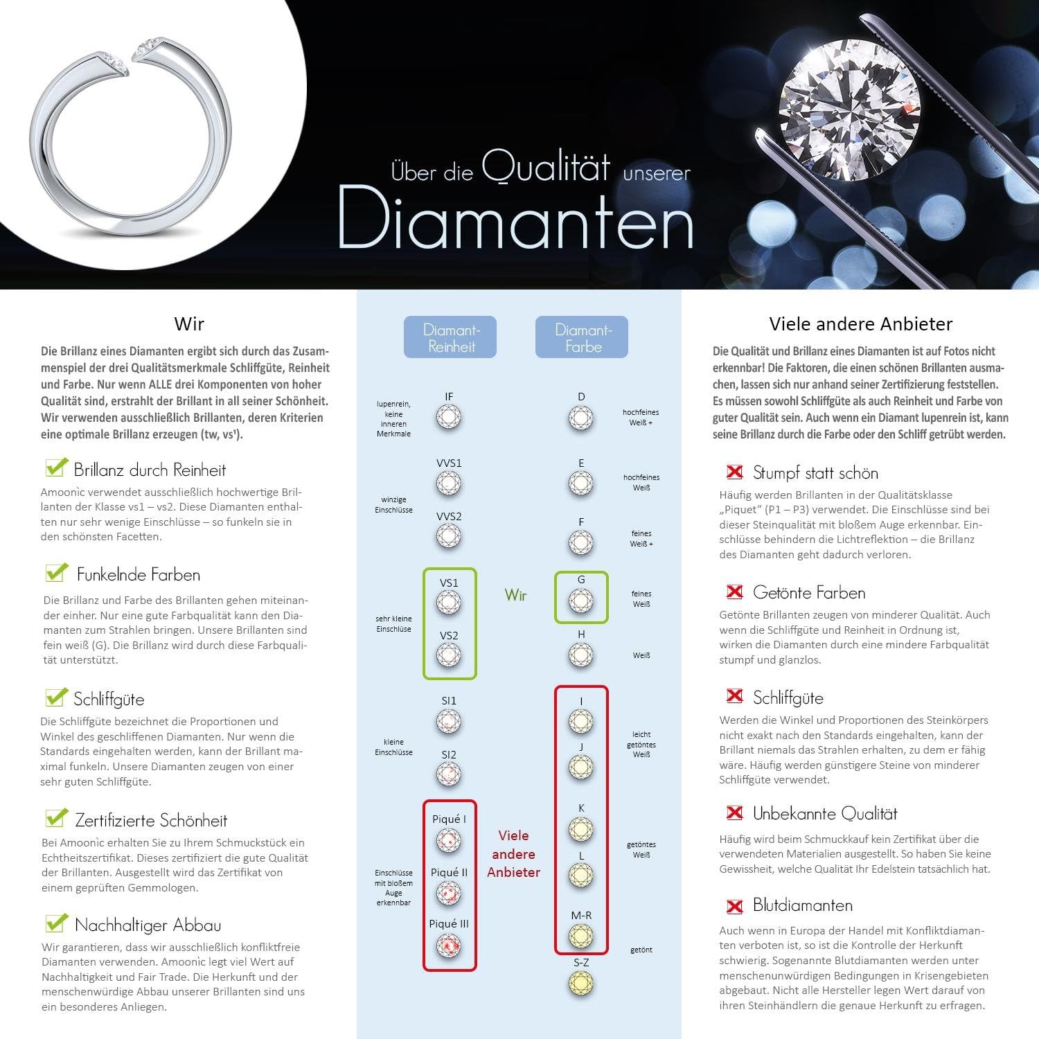 AMOONIC Diamant-Ring für Damen inkl. Luxusetui: 0,08 Karat SI1/H (Weißgold 585)